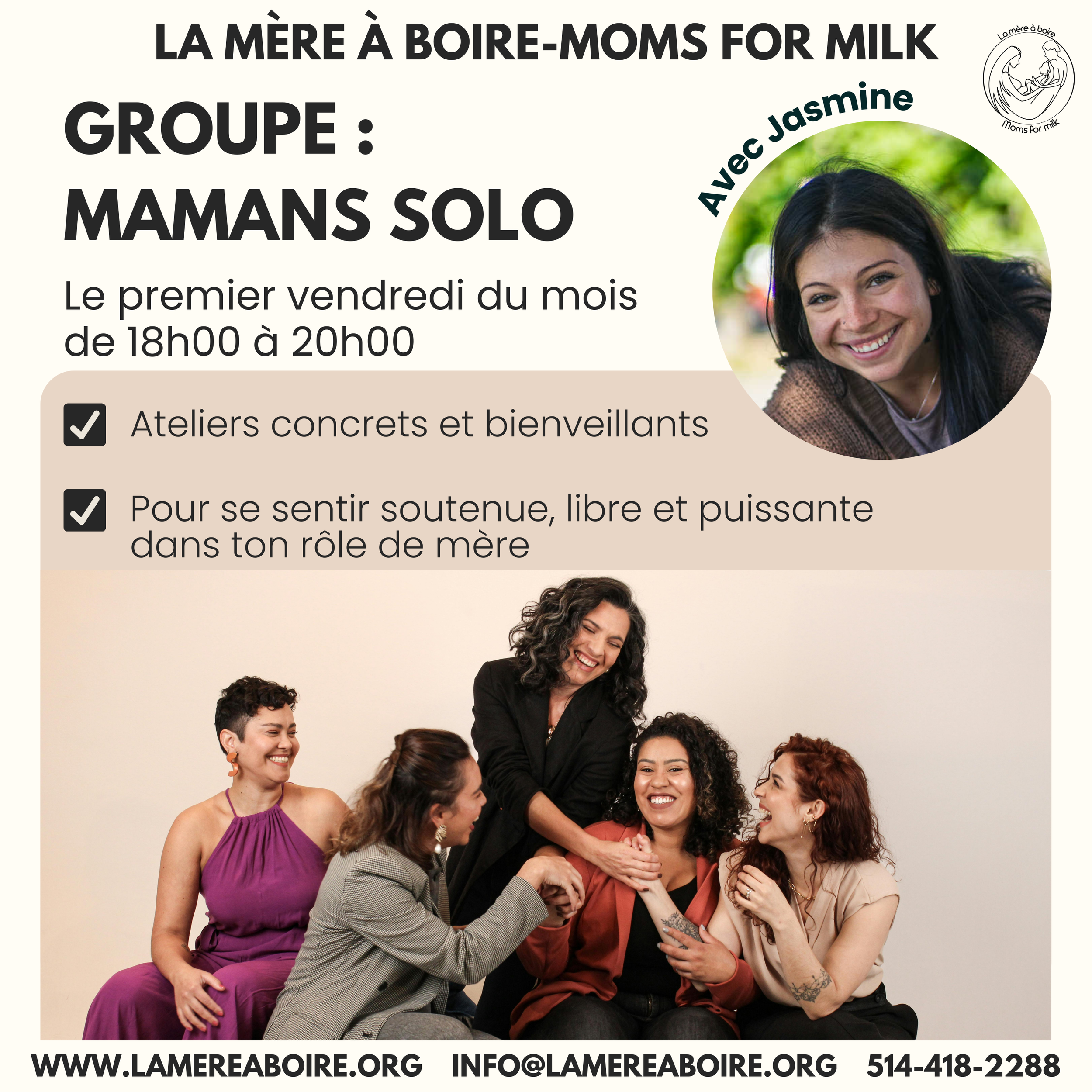 La facilitatrice, Jasmine, est bilingue, et les formats des rencontres varient chaque mois. Certaines séances sont des discussions ouvertes où chacune peut partager librement, tandis que d’autres portent sur des thèmes guidés proposés par Jasmine. Si vous avez des sujets que vous souhaitez explorer, nous serons toujours heureuses d’entendre vos idées.
